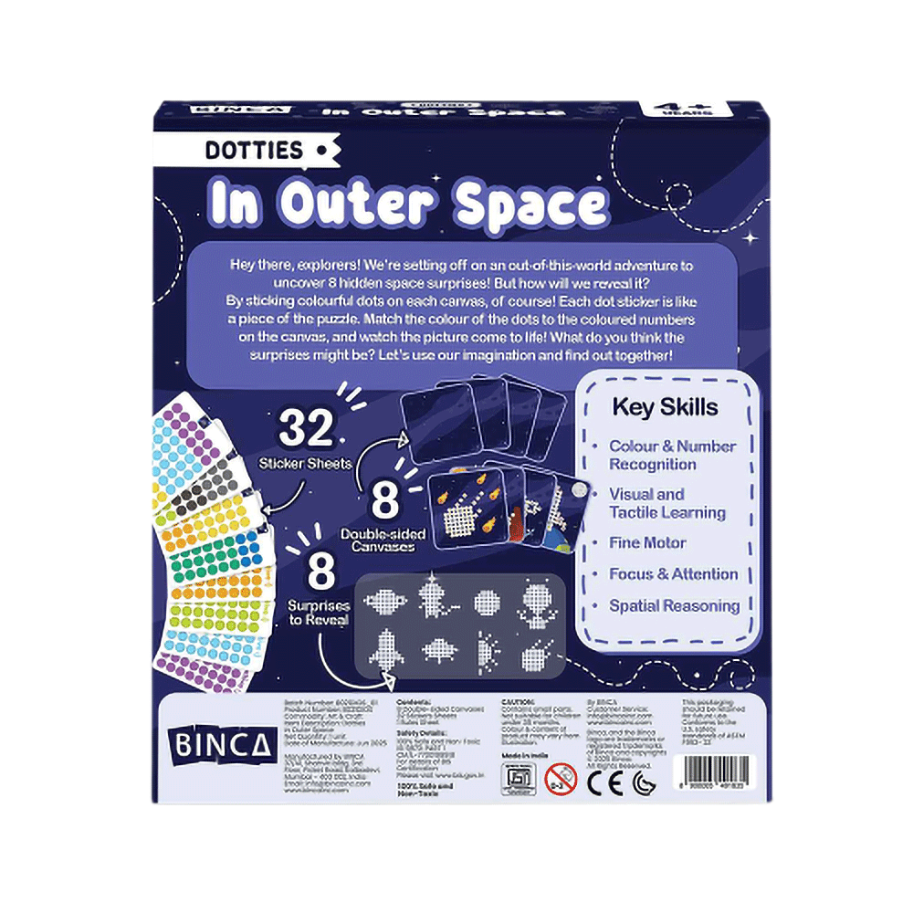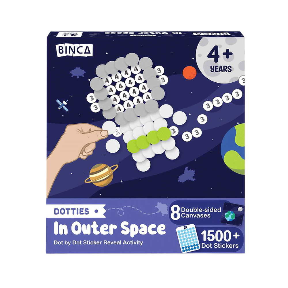 DOT BY DOT STICKER ART ACTIVITY: Reveal 8 space surprises with this engaging sticker art kit for kids. With over 1,500 easy-to-peel stickers, it’s the perfect art & craft activity for little hands.