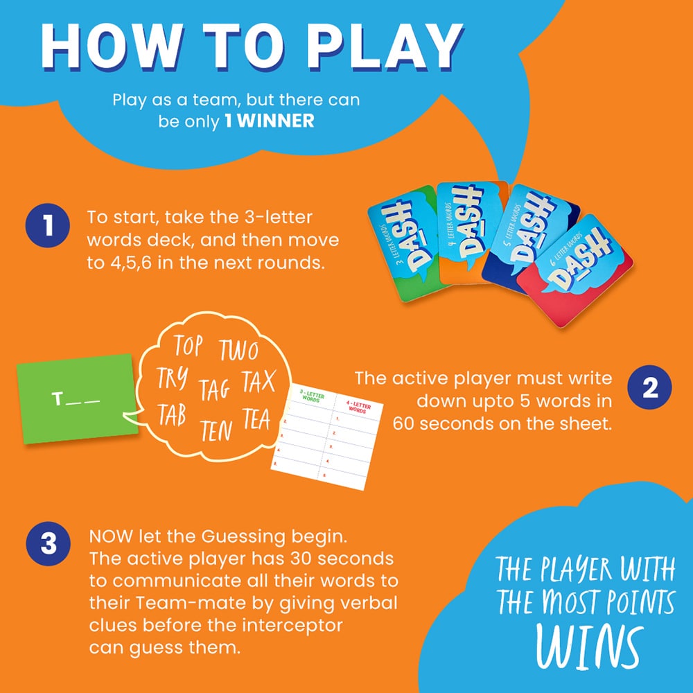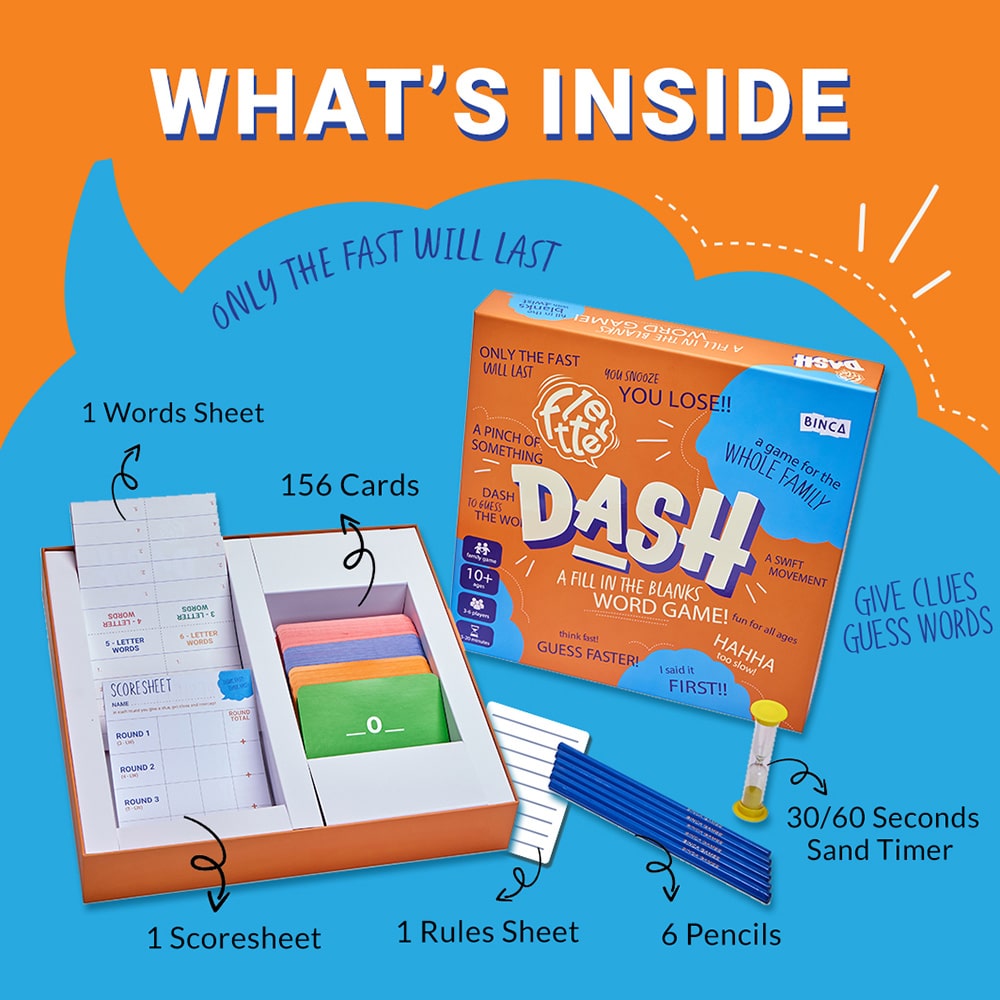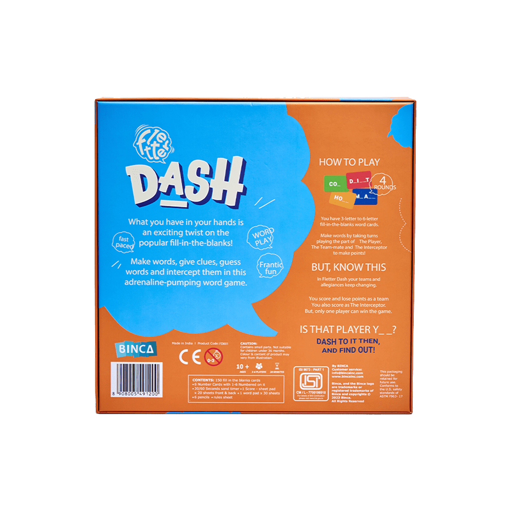 Fletter Dash is a fast-paced word game that puts your brain and reflexes to the test! In just 30 seconds, give clever clues and get your teammate to guess as many words as possible—before the Interceptor jumps in to steal your points! With quick rounds, creative thinking, and loads of laughter, this game guarantees high-energy fun every single time. Perfect for families, friends, and anyone who loves a good word challenge!