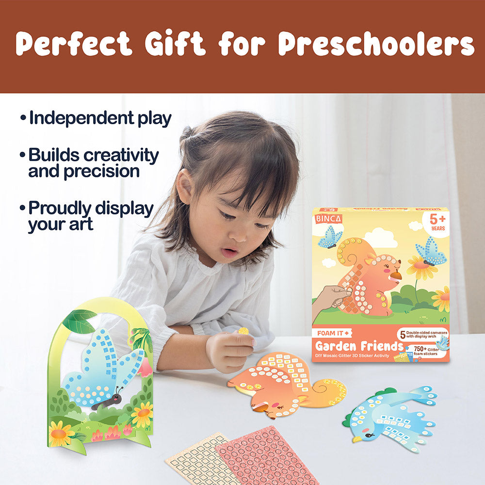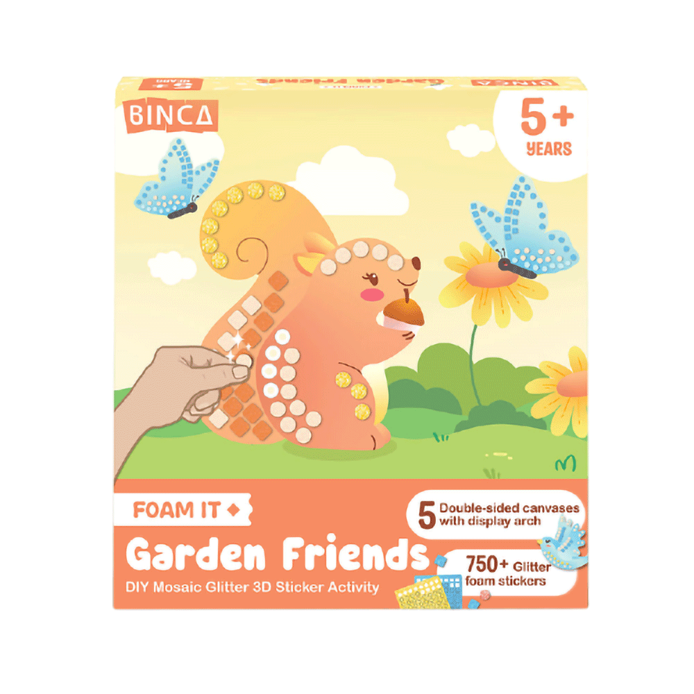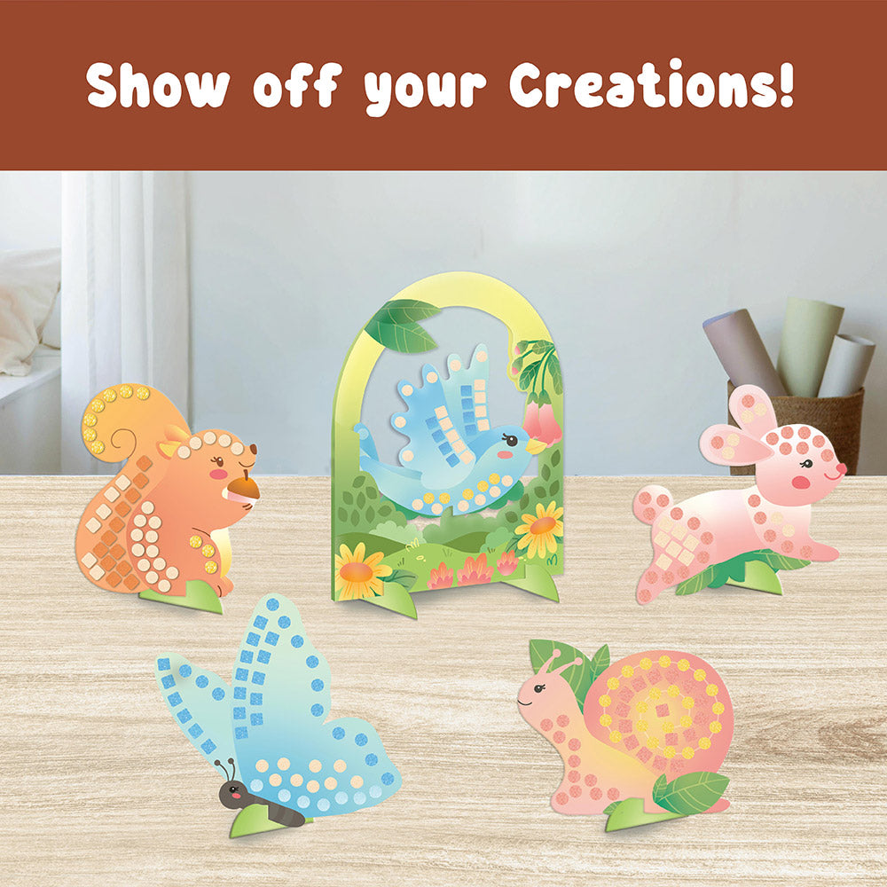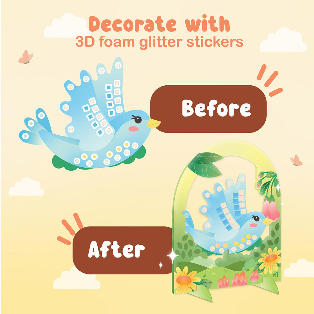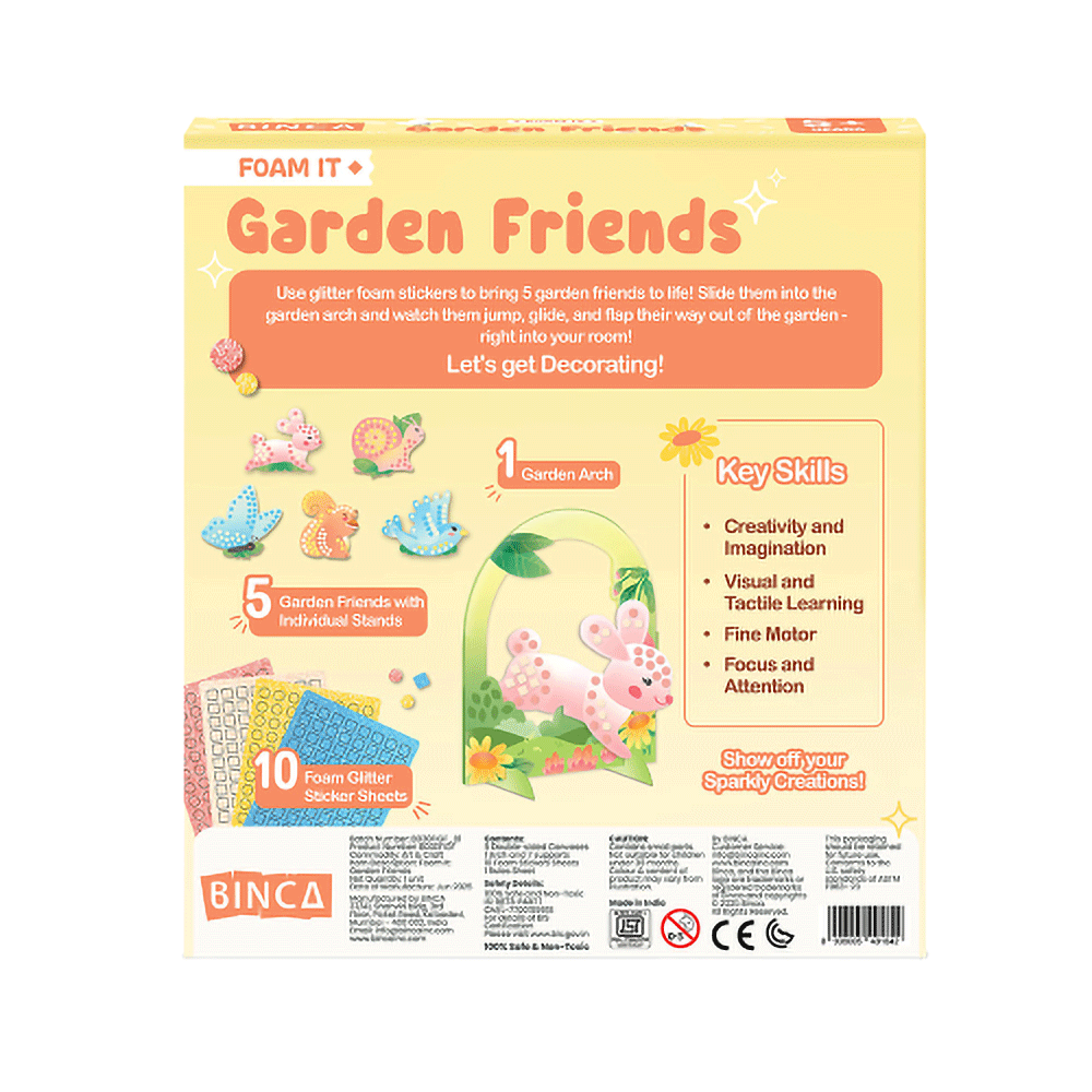Use glitter foam stickers to bring 5 garden friends to life! Slide them into the garden arch and watch them jump, glide, and flap their way out of the garden - right into your room! Let's get decorating!