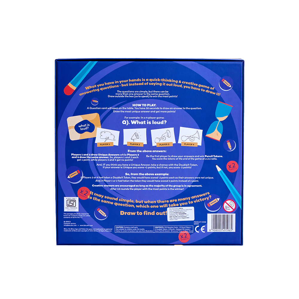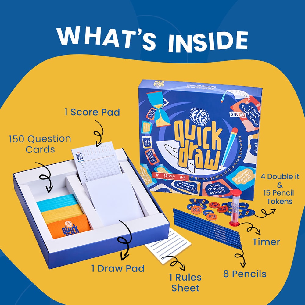 Unleash your inner artist and get ready for endless fun with Binca Fletter Quick Draw! This fast-paced, high-energy drawing game turns game nights into exciting sketch challenges. Perfect for ages 8 & up, it encourages players to think fast and sketch faster! The sillier the drawings, the bigger the laughs—so let your creativity soar! With simple rules, it’s easy to learn and promises hours of fun, while boosting imagination and artistic skills.