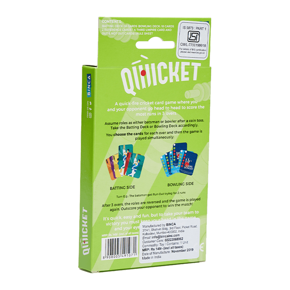 PORTABLE & TRAVEL-FRIENDLY: Binca Qwicket is a compact and lightweight card game, making it perfect for travel, road trips, holidays, school breaks, parties, and family gatherings. Carry it in your bag and enjoy cricket fun anytime, anywhere — great for on-the-go entertainment!