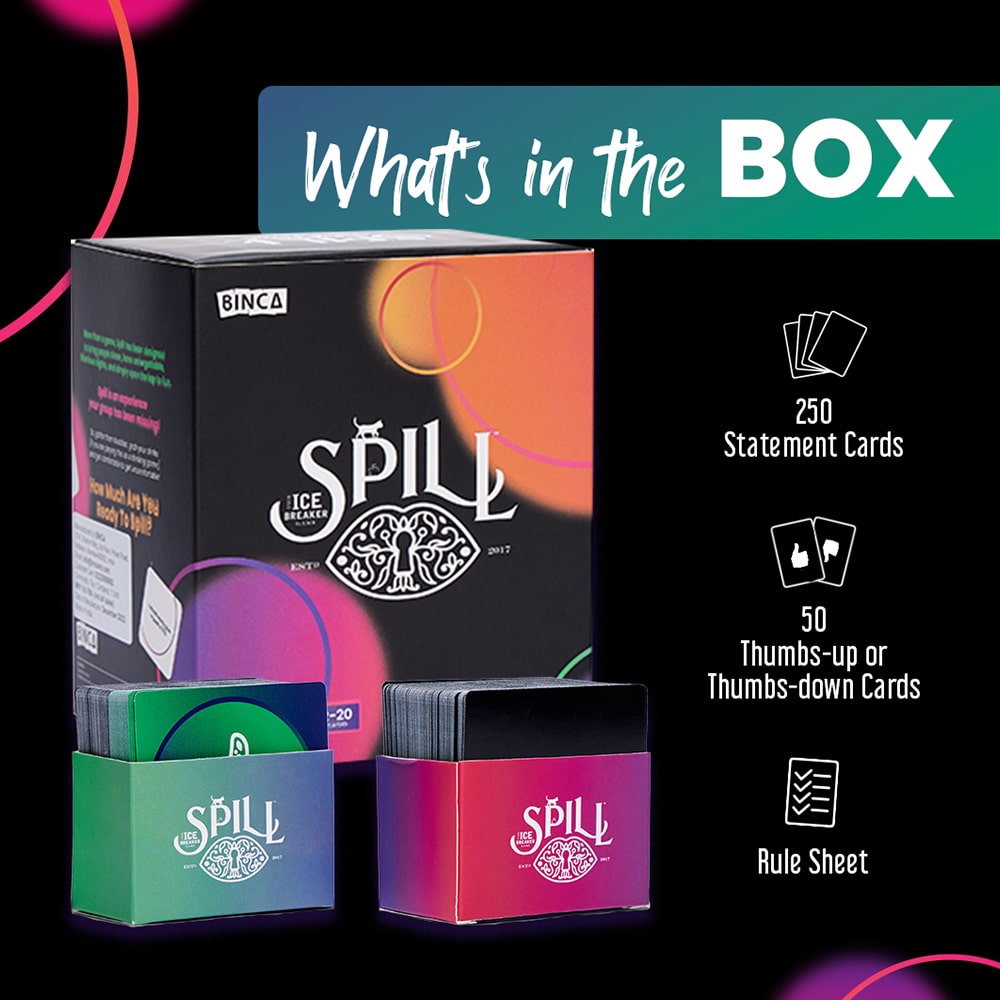 PARTY ICE-BREAKER: Spill is the ultimate social game that sparks laughter and reveals surprising facts, making it perfect for breaking the ice and getting everyone talking at any party